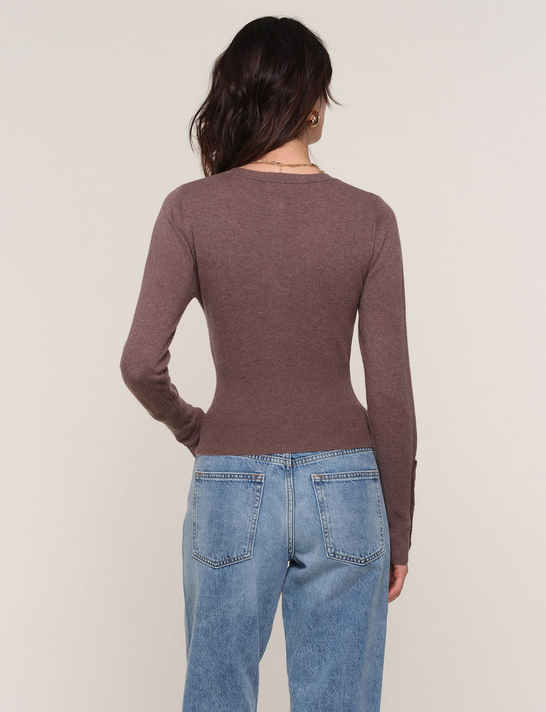 The Seurat Cardi is a super soft cardigan made from a cashmere blend. It has a crew neck, long sleeves and novelty buttons. The body has a rib hem which cinches it in at the waist, making a super flattering fit.