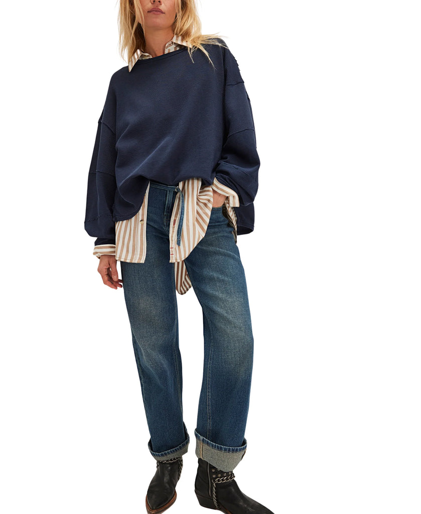 Stay effortlessly stylish with the Total Eclipse Tee in Deeper Iris by Free People. This slouchy, oversized tee features ribbed fabric, a scoop neckline, and drop-shoulder sleeves with cuff details, along with defined seams and raw trim for subtle edge. A versatile layering top, it’s perfect for any season and wardrobe.