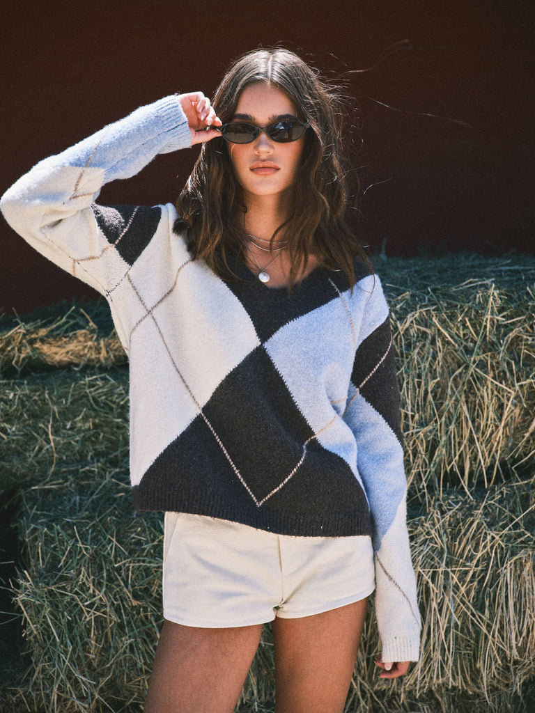 VIRGINIA ARGYLE SWEATER - V Neck, Preppy, Knit